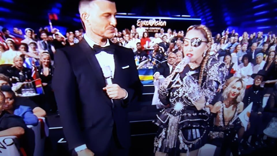 Мадона вечерва е гостин на евровизиското шоу, таа кажа дека е почестена што е таму и може да ја сподели со нив музиката.