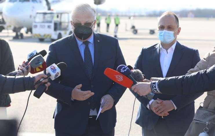На Скопскиот аеродром попладнево пристигна првата пратка вакцини од рускиот производител „Спутник В“. Ги пречекаа министерот за здравство Венко Филипче и амбасадорот на Руската Федерација во земјава Сергеј Баздникин.
