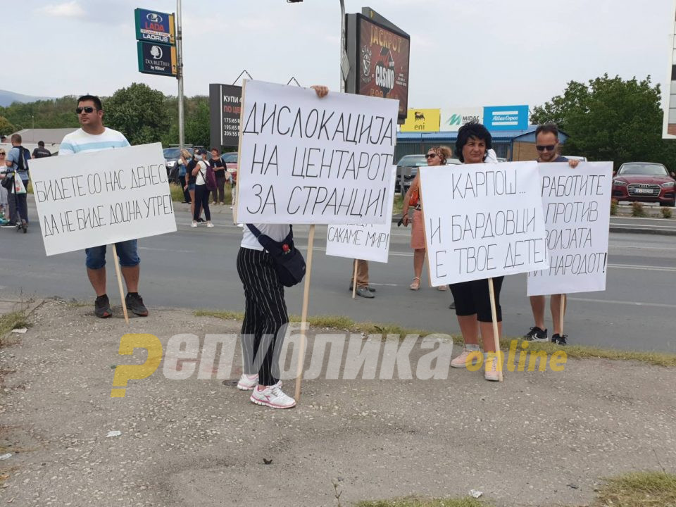 Карпош, и Бардовци е твое дете, Работите против волјата на народот, Бидете со нас денес, да не биде доцна утре, Дислокација на центарот за странци се дел од паролите на денешниот протест во Бардовци против изградба на Центар за странци.